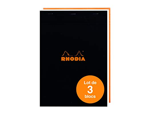 Rhodia 182019AMZC – Set med 3 anteckningsblock nr 18 DIN A4 (21 x 29,7 cm), häftad på huvudsidan, 80 ark mikroperforerade, rutigt, Clairefontaine-papper vitt 80 g, omslag sorterat, 3 stycken