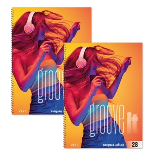 Staufen Collegeblock Groove it Woman med hörlurar – 2 block vardera 80 ark, linjer 28 (5 mm rutigt med kantlinjer), DIN A4, 4-faldigt häfte, 70 g/m² papper