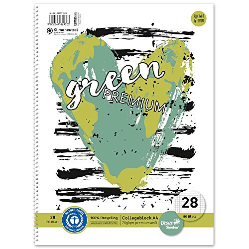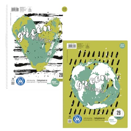 Staufen 608511028 – damm grönt collegeblock, DIN A4, försättsblad med 2 motiv, linjering 28 (5 mm rutigt med marginallinjer), 80 ark, 4-håls stansning, premiumvit 70 g/m² återvunnet papper, 5 stycken
