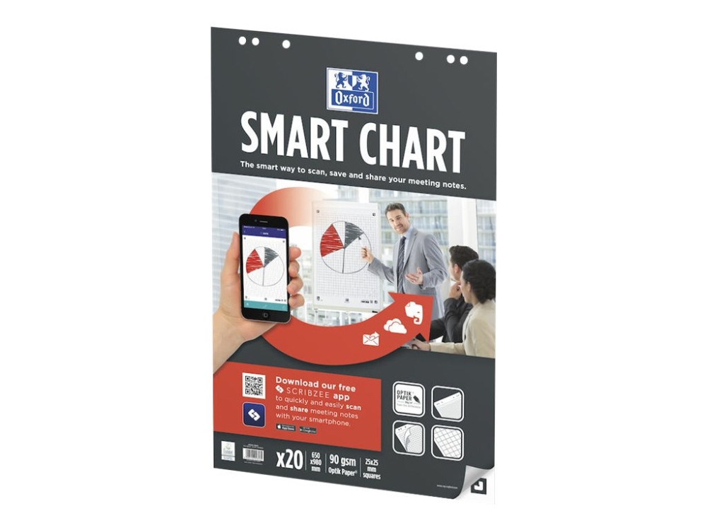 Oxford Smartchart - Flipover-Papper - 650 X 980 Mm - 20 Ark - Vitt - Rutigt - 6 Hål