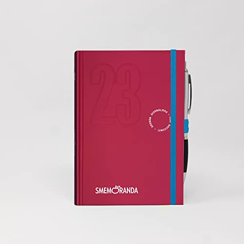 Smemoranda - Daglig AGENDA 12 månader, januari-december 2023 - Rutigt papper, medium storlek 11,2 x 16,4 cm - penna ingår - Cyklamen rosa, P000597