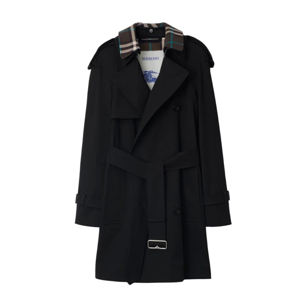 Burberry, Kappor & Rockar , Dam, XS, Bomull, Svart bomulls trenchcoat med rutmönster