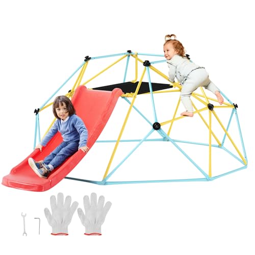 VEVOR Klättringskupol, 2,4 m geometrisk kupolklättrare med rutschkana, för barn 3–9 år, djungel gym stöder 272 kg, enkel montering, med klättringshandtag, lekutrustning utomhus.
