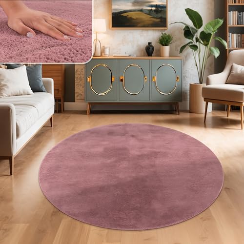 Paco Home Matta Vardagsrum Konstfäll Plysch Ryamatta Mjuk Tvättbar, Storlek:Ø 100 cm Runda, Färg:Lila Rosa