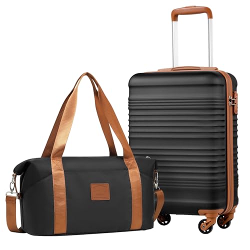 COOLIFE Kabinväska 55 x 35 x 20 cm för Ryanair flygbolag handbagage kabinbagage hårt fodral lätt med TSA-lås och 4 hjul, Svart / brun, 55×40×20cm -Set 2tlg, Kabinväska