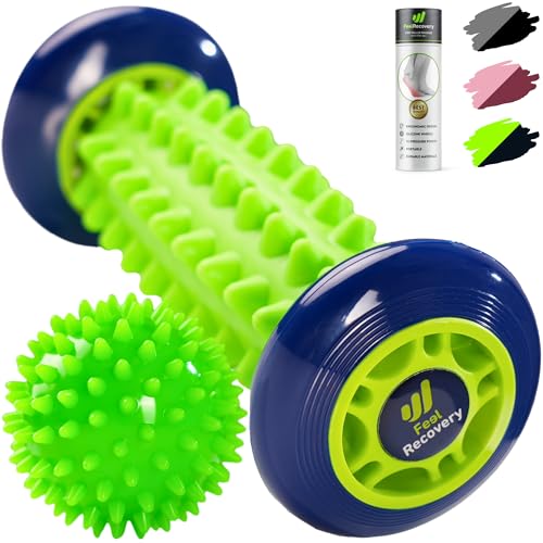 Set Fotmassagerulle för Plantar Fasciit + Massageboll Igelkottsboll för Massage Reflexologi - Set Akupressur för Smärtlindring av Fötter, Hälar, Rygg, Ben & Cellulit (Grön)