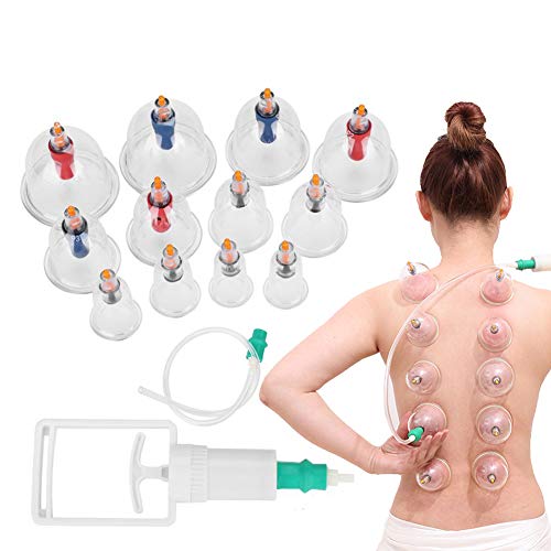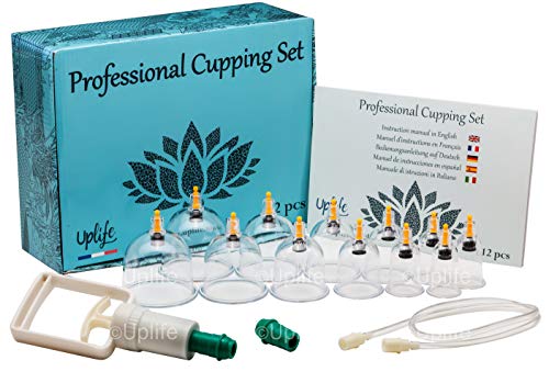 Uplife Kinesisk koppningsterapiset, 12 vakuum luftsugkoppar med pumphandtag, anti-celluliter massage för rygg/hals