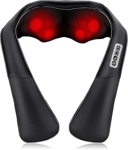 RENPHO Rygg- och axelmasserare med värme, djup vävnad 3D-knådning shiatsu-massage, elektrisk massageapparat för hemmakontoret