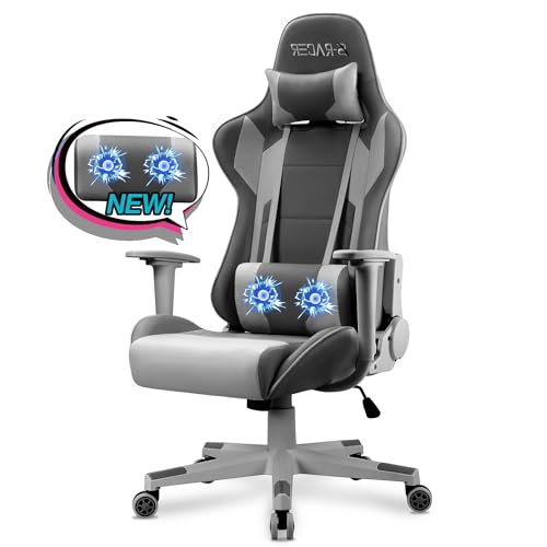 Homall Massage-spelstol för vuxna, ergonomisk kontorsskrivbordsstol för hem, svängbara racingdatorstolar, hög rygg liggande stol med kudde och ryggstöd (grå)