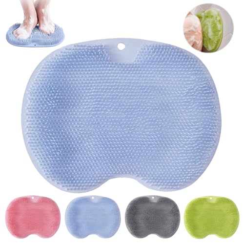 Fotborste tvättare massageapparat dusch med sugkopp silikon, halkfri silikon massagedyna, fottvätt fottvätt bad massage dyna för rengöring peeling massera dina fötter och rygg (blå)