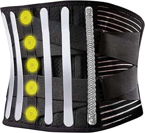 AOGOE Ryggstödsbälte med 5 Metallstöd, Ryggstöd Svankbälte för Män och Kvinnor med Avtagbar 3D Ländryggsdyna för Nedre Rygg och Ländrygg, Ryggbälte för Arbete och Sport (L)