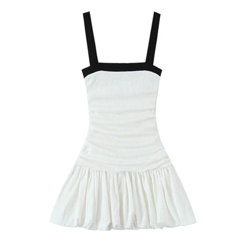 ERFMFKL Dam vit fyrkantig krage ärmlös klänning rygglös flätad dragkedja smal miniklänningar, Vitt, XS