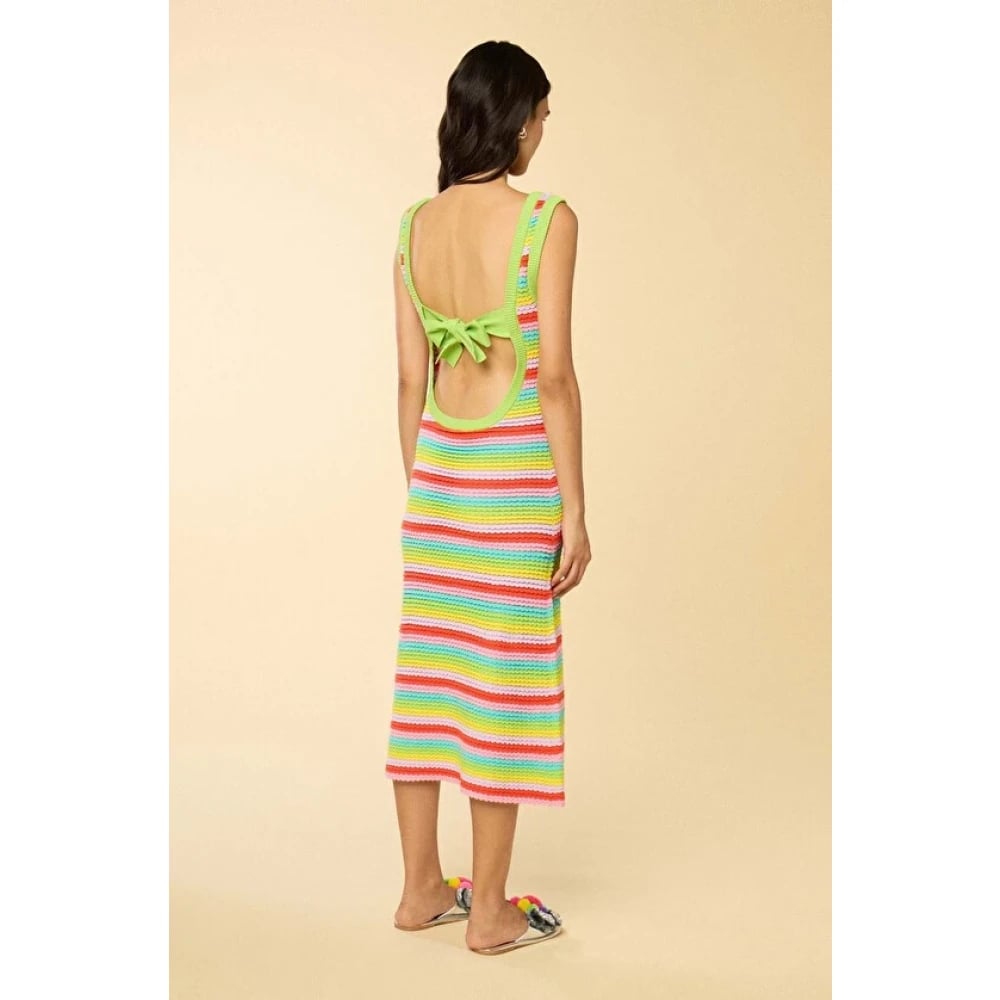 Manoush, Klänningar , Dam, M, Bomull, Regnbåge Stickad Rygglös Midi Klänning