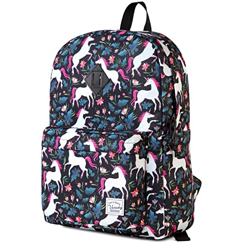 VASCHY Lätt skolväska, 20 liter vattentålig ryggsäck för resor sport vandring, skolryggsäck med två flaskfickor, Rosa galax, Vardagsryggsäckar hite Horse
