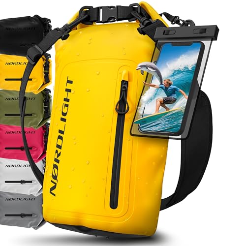 Nordlight Dry Bag Vattentät Väska med Mobilfodra+ Rullstängning, Axelrem | Drybag Vattentät Ryggsäck Packsäck Våtbag Packväska | Simning Strand Stå Upp Paddling Kanotpaddling - Gul, 30 Liter