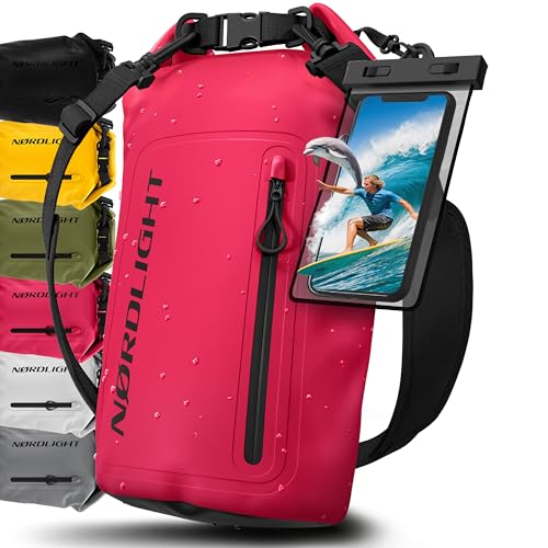 Nordlight Dry Bag Vattentät Väska med Mobilfodra+ Rullstängning, Axelrem | Drybag Vattentät Ryggsäck Packsäck Våtbag Packväska | Simning Strand Stå Upp Paddling Kanotpaddling - Rosa, 30 Liter