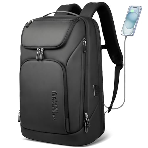 Företag bärbar ryggsäck för män kvinnor, vattentät stöldskydd 17,3 tum ryggsäck med USB-laddningshantering, hållbar kompakt 30L datorväska för resor, arbete, college, kontor - svart