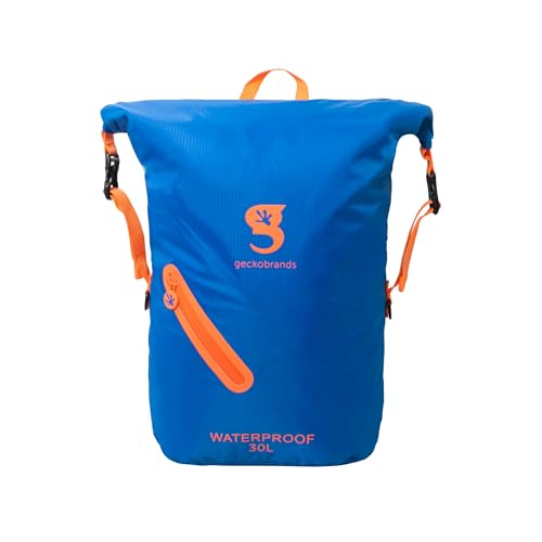 geckobrands Lätt vattentät ryggsäck i 30 L – lätt vattentät utomhusväska vandring resor lätt vattenaktiviteter, Kungsblå/Orange, 30 L, Våtmiljö