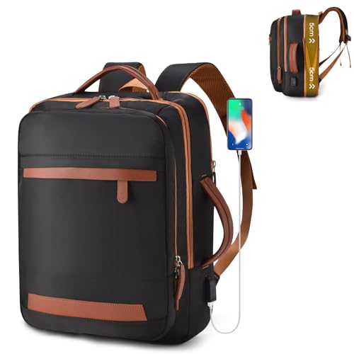 BAGZY Handbagage Ryggsäck 40x30x15 British Airways Vattentät 15,6 Tum Bärbar Ryggsäck med USB-anslutning Stöldskydd Skolryggsäck Herren Damen för Resor, Affärsresor, Kontorarbete Svart