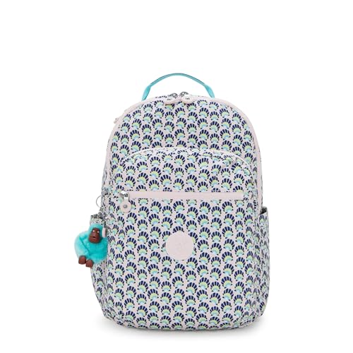 Kipling Seoul 15 tum laptopryggsäck för kvinnor, hållbar, rymlig med vadderade axelremmar, inbyggd skyddsärm, Geo Shell, 12.75''L x 17.25''H x 8''D, Seoul 15 tum bärbar ryggsäck, hållbar, rymlig med