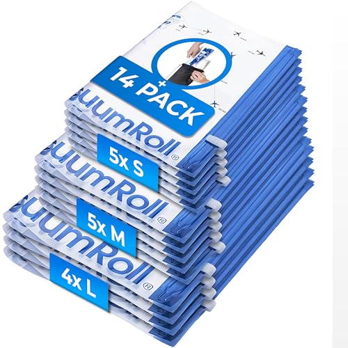 myHodo Vakuumpåsar för Rullning (14+1 delar) 3 storlekar (70x50 60x40 50x35cm) för Resor, Reseförvaring för Ryggsäck, Resväska, Backpacking, Vakuumpåsar för Käder, Vakuumkomprimeringspåsar