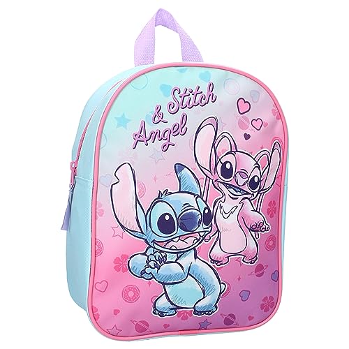 STITCH & ANGEL Hello Cutie ryggsäck från Disney Lilo & Stitch – ryggsäck för barn | skola | dagis - färg rosa - storlek 29 x 22 x 9 cm, Flerfärgad, Taglia unica