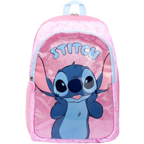Disney Stitch skolväska ryggsäck för flickor flera fack resa glitter ryggsäck för barn justerbara axelremmar och nätficka, Rosa