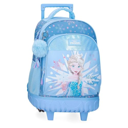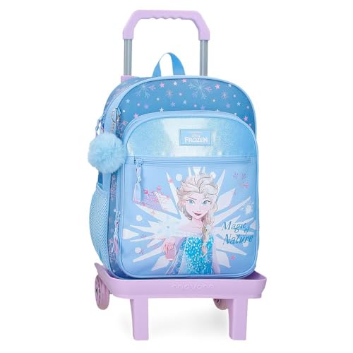 Joumma Bags Disney Frozen Magic Ice ryggsäck för barn, blå, tillverkad av polyester, justerbara remmar för bekväm bärning, olika fack, med blå pompom-nyckelring, Blå, Ryggsäck med hjul