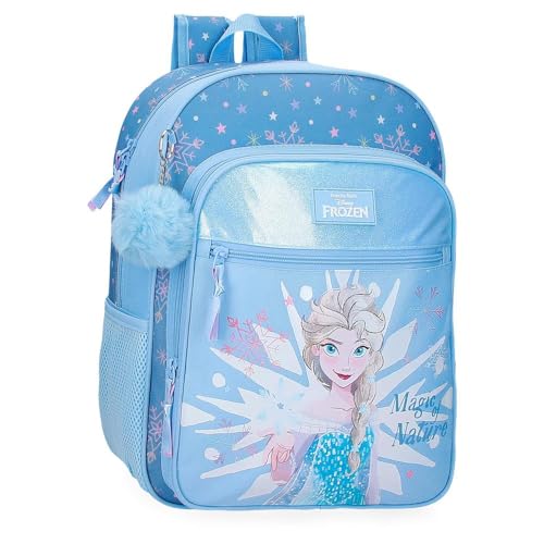 Joumma Bags Disney Frozen Magic Ice ryggsäck för barn, blå, tillverkad av polyester, justerbara remmar för bekväm bärning, olika fack, med blå pompom-nyckelring, Blå, 41 x 21 x 21 cm, reseryggsäck