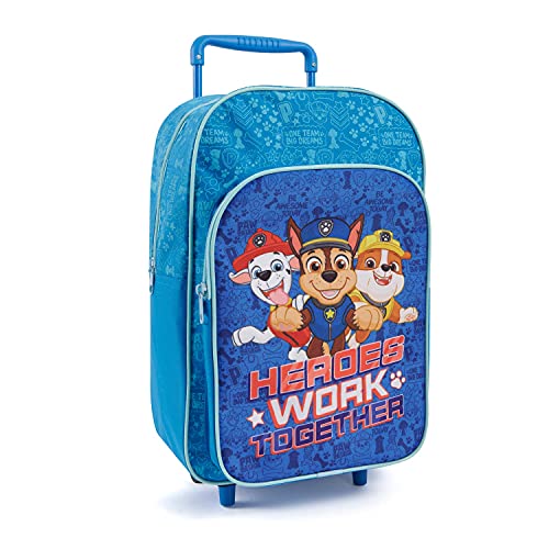 Paw Patrol Kabinväska Ryggsäck för Barn - Backpack med Stora Fack Blå - Dagväska för Småbarn Förskola och Resor - Junior Väska med Serietryck och Löstagbara Hjul för Pojkar - 36x24x12 cm - Perletti