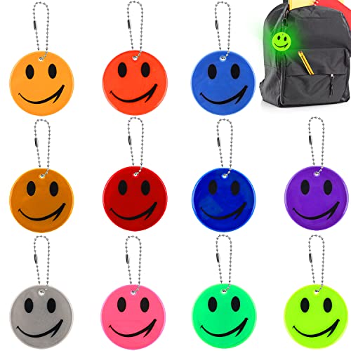 Prmape 11 stycken säkerhetsreflektor hänge, reflektorer barn, reflekterande smiley-hänge, lysande hänge 11 färger för skolväska ryggsäck cykling löpning