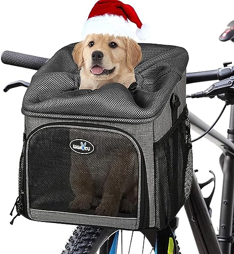 Wakytu Cykelkorg för hundar, främre cykelhållare för husdjur, ryggsäck för cykling, hopvikbar och borttagbar, med reflexremsor och 2 sidoförvaringsfickor, husdjursresväska för katter och små hundar