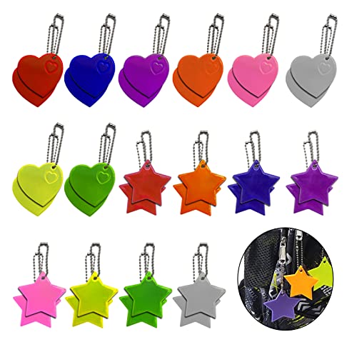 Esteopt 26 st säkerhetsreflektorhänge, barns reflektorhänge, stjärnsäkerhetsreflektor för skolväska ryggsäck cykling promenader löpning (13 färger)