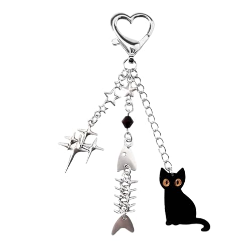 Yeomju Y2K Stjärna Nyckelring - Rolig Svart Katt Present till Kattälskare i Rostfritt Stål för Handväska, Ryggsäck