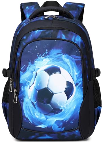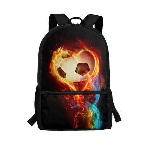 LOIDOU Skolryggsäck för pojkar, skolväska, ryggsäck för flickor, lätt, lämplig för barn, skolväskor, fritidsgåvor, Flamma fotboll, L