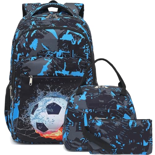 Jumpopack pojkar skolväska barn ryggsäckar för pojkar skolväskor barn skola ryggsäck set, Fotboll Blå, L