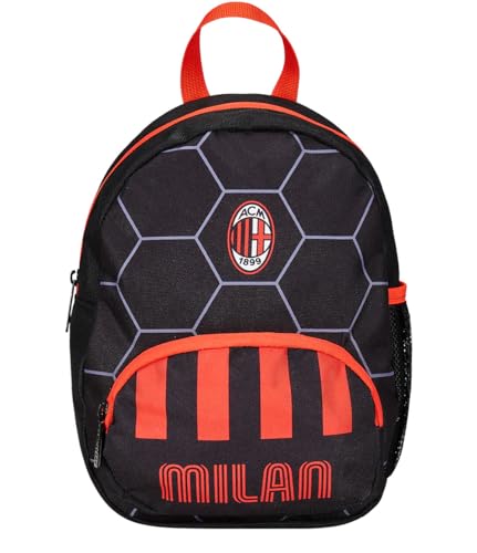 A.C. Milan Liten dagis ryggsäck, fotboll, svart röd - sidofickor, vattenflaskhållare, framficka, barndagis, ryggsäck - barn skolryggsäck, Flerfärgad, Taglia unica, Ryggsäck Ryggsäckar