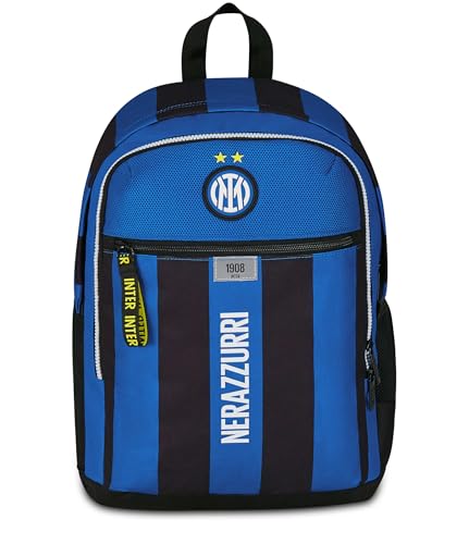 Seven Inter Fotboll Ryggsäck med dubbla fack, blå, framficka med dragkedja och vattenflaskficka, barn, grundskola, Blå, Taglia unica, Avslappnad