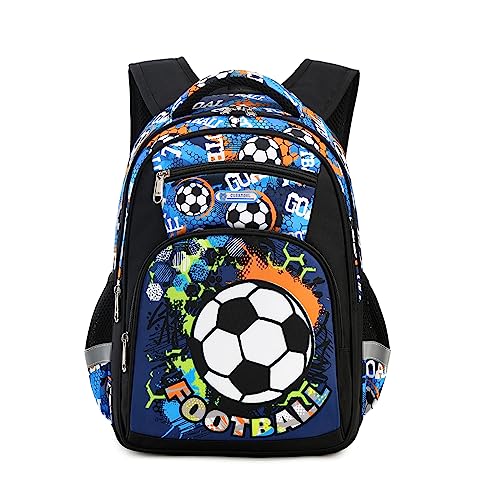 Pojkar ryggsäck skolväskor för pojkar barn grundskolväska barn skola ryggsäck vattentät nylon ryggsäck vardaglig dagväska, Fotboll Blå, L