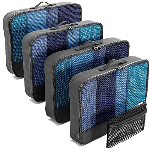 OW-Travel Packing Cubes (4 Färg) Lätt att Organisera Travel Organizer. Packpåsar i Blått, Gult, Orange och Rosa Organiseringsset för Resväskor. Packkuber Ryggsäck eller Handbagage