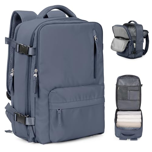 VGCUB Handbagage ryggsäck, stor reseryggsäck för kvinnor män flygbolag godkänd gym ryggsäck vattentät business laptop dagväska, grå Blå, L, Stor