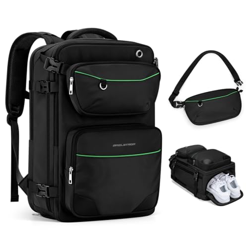 Maelstrom Reseryggsäck för män och kvinnor, 35 l handbagage ryggsäck för flygresor med bältesväska och skofack, vattentät laptopryggsäck som passar 48 cm bärbar dator, klassisk