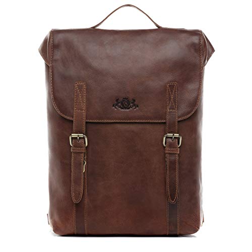 SID & VAIN Eton ryggsäck | 15 tum laptop fack i äkta läder | ryggsäckar stor brun | handgjord skolreseryggsäck, kastanj, L, ryggsäck, Brun, L, Ryggsäck