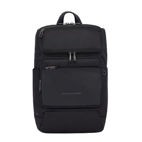 PIQUADRO Woody Medium ryggsäck i läder och tyg, Schwarz_schwarz, Taglia unica, Företag