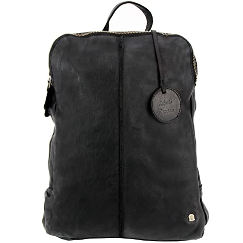 Roberto Romano handgjord ryggsäck CAPRI av äkta läder i svart 48203 | ryggsäck, läderryggsäck, damryggsäck | Modern design för fritid, skola, affärer och semester, svart, ca. 25,5 x 34 x 7,5 cm,