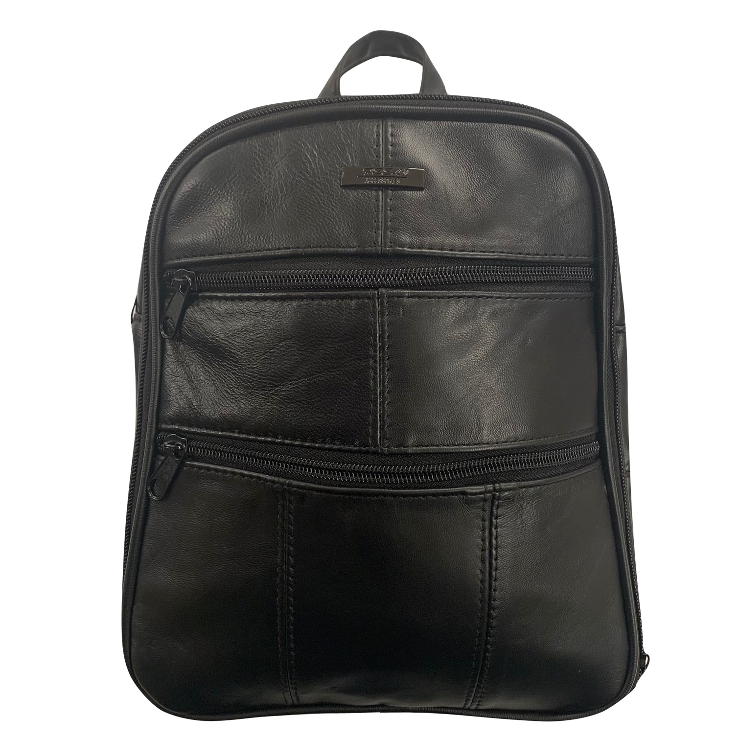 Scharlau Liten ryggsäck KM4 i läder i färgen svart, BA03-L02BK, svart, 25 x 34 x 9 cm, Företag