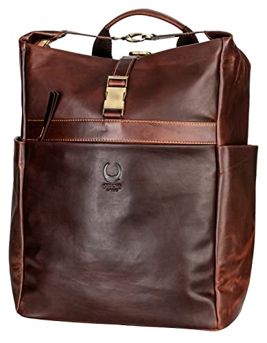 Corno d’Oro Handgjord rolltop-ryggsäck för herrar, stor, i läder | Premium XL-läderryggsäck, för damer, med justerbar volym upp till 25 l | Laptopryggsäck, 17 tums laptop, brun, BRUN, XXL, modern