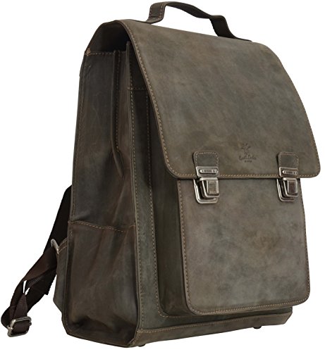 HULSH 40 cm äkta läderryggsäck för kvinnor och män läderryggsäck och laptopryggsäck i läder för kvinnor | läderryggsäck för män perfekt ryggsäck för daglig användning retro ryggsäck vintage, Brun, L