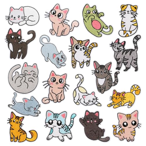 18 stycken kattungar lappar att stryka, lappar att stryka på, stryka på barn, stryklappar barn, för kläder, t-shirt, jeans, ryggsäck, mössor, gör-det-själv
