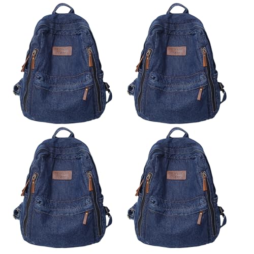 4 st denim ryggsäck för män kvinnor vintage ryggsäck kanvas ryggsäck blå jeans laptop ryggsäck retro ryggsäck för studier resor arbete, Mörkblått, L